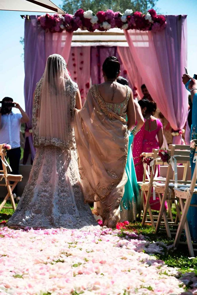 Decoración de boda hindú en tonos rosas