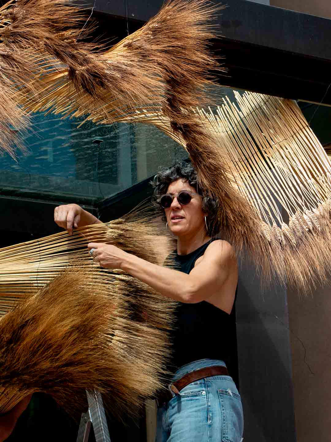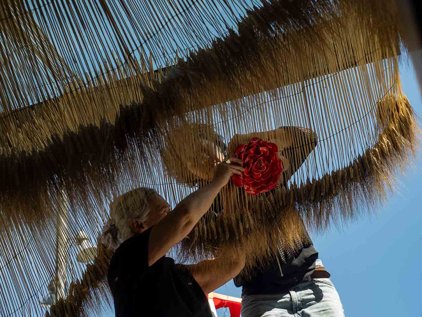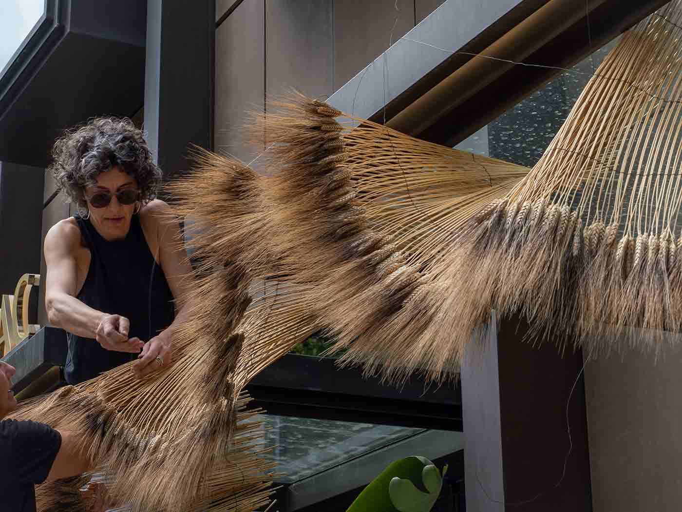 La propuesta se compone de las imágenes más emblemáticas de este día: la flor y la espiga de trigo. Dos piezas elementales pero significativas que, junto con una nueva lectura contemporánea, adoptan la forma de una instalación en sí misma. Con formación y práctica en las artes florales, es posible investigar la ruptura de las reglas con elementos terrosos como las espigas, permitiendo que se integren como parte de una composición en masa donde se convierten en formaciones de oleaje continuo, con poca semejanza de una simetría rígida.