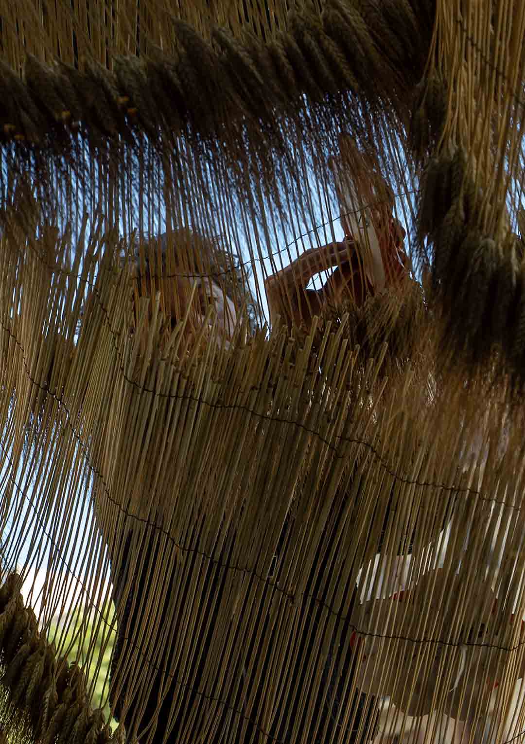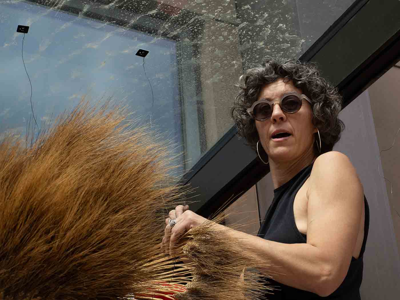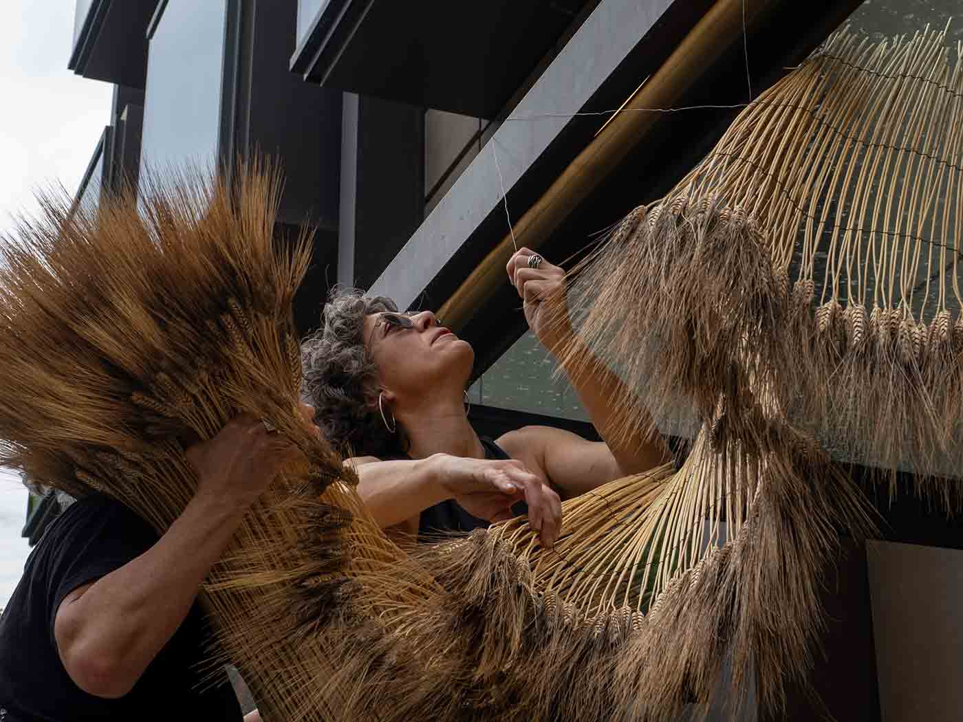 La propuesta se compone de las imágenes más emblemáticas de este día: la flor y la espiga de trigo. Dos piezas elementales pero significativas que, junto con una nueva lectura contemporánea, adoptan la forma de una instalación en sí misma. Con formación y práctica en las artes florales, es posible investigar la ruptura de las reglas con elementos terrosos como las espigas, permitiendo que se integren como parte de una composición en masa donde se convierten en formaciones de oleaje continuo, con poca semejanza de una simetría rígida.