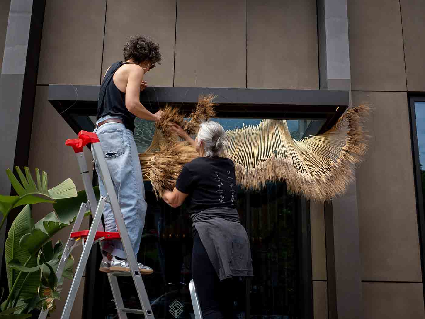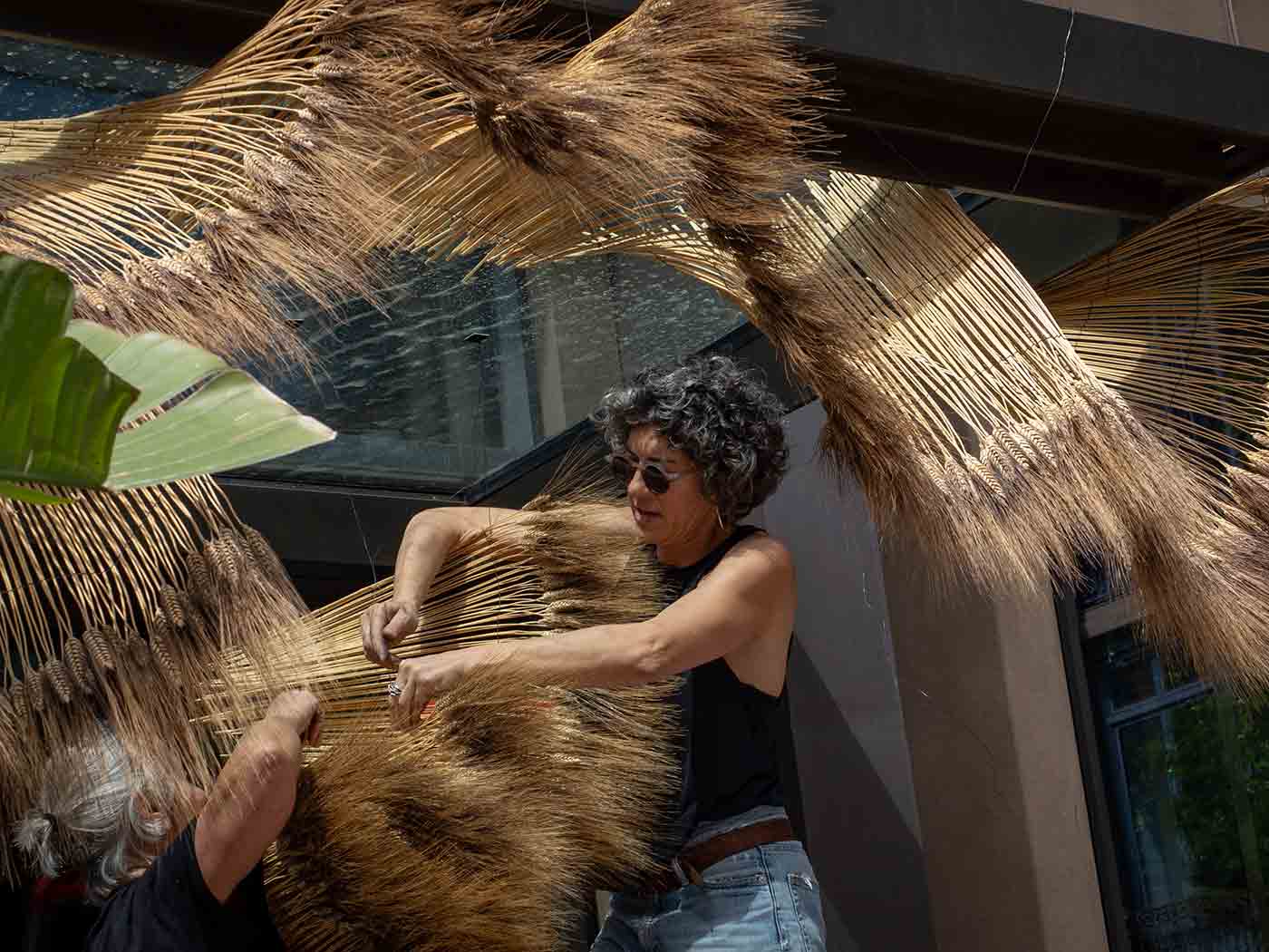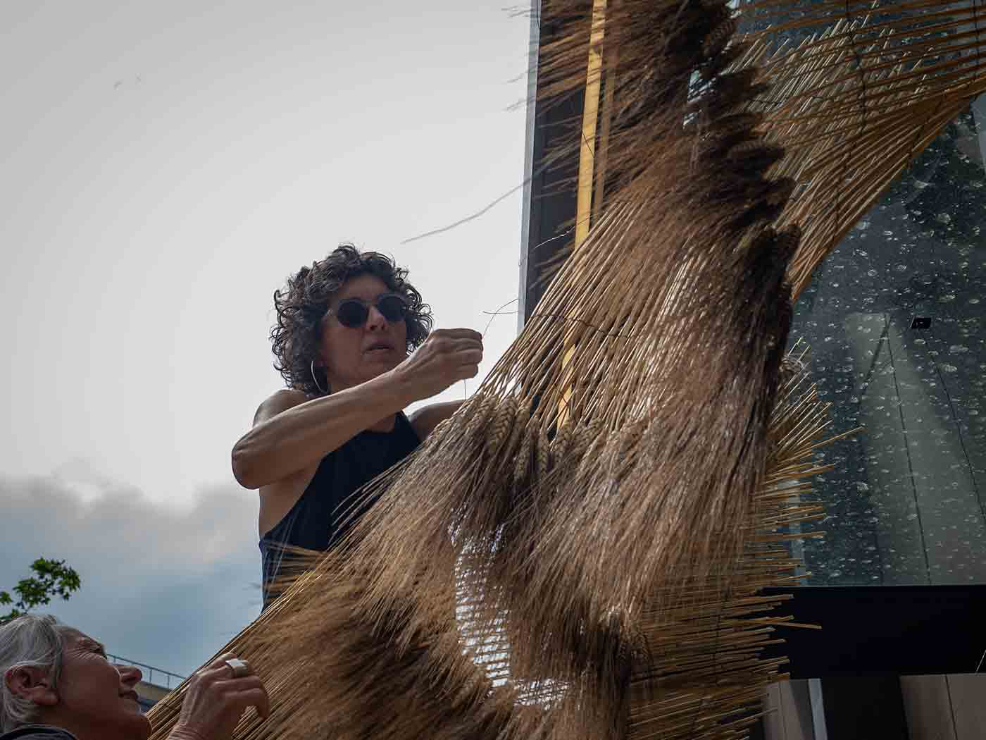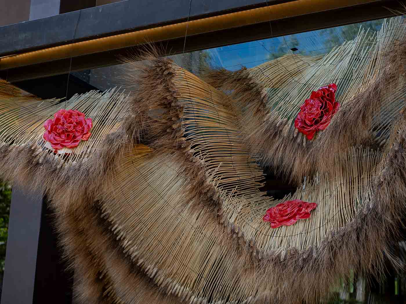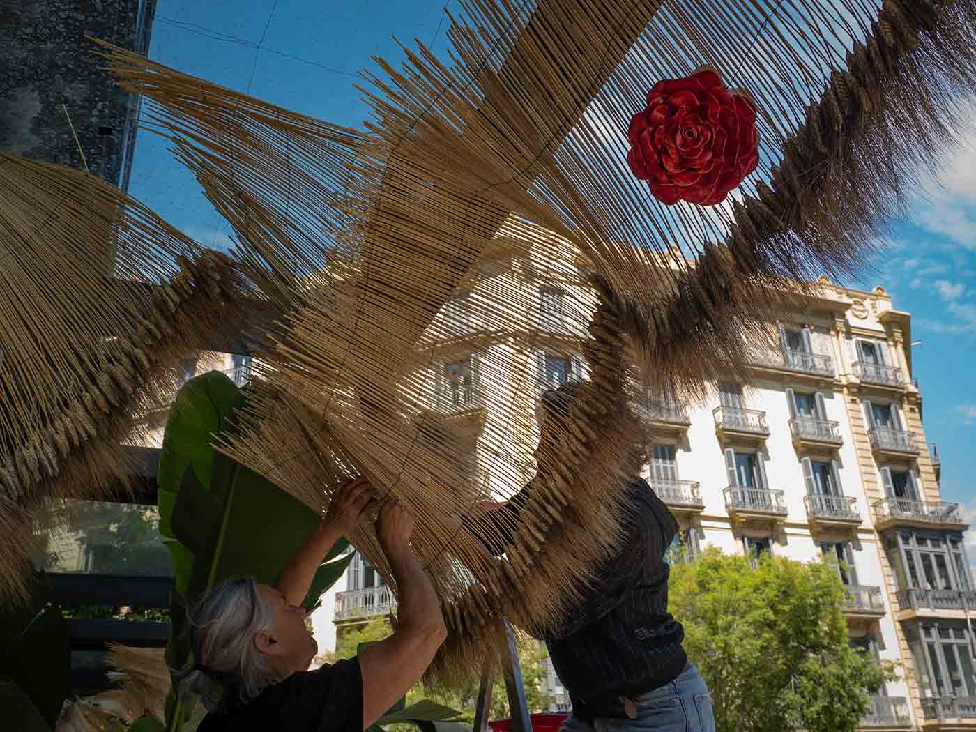Una instalación que decora, pero también altera la lectura de la aproximación, descompone la linealidad espacial y, conceptualmente, se entreteje con el espíritu de Sant Jordi: el día del libro, la flor y la festividad compartida. Un homenaje pictórico a la contemporaneidad de una fusión entre tradición y oficio en uno de los momentos más especiales del calendario catalán.